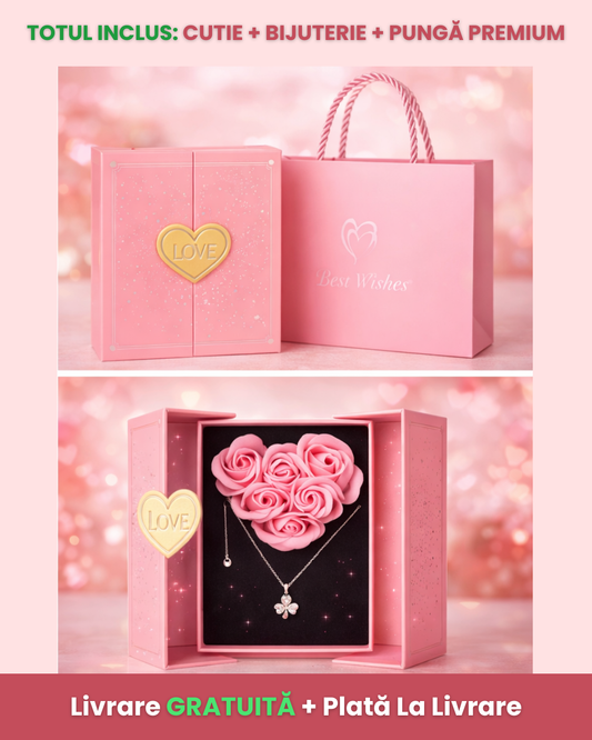 Set Cadou Premium „Iubire Eternă” – Trandafiri de Săpun + Bijuterie Inclusă