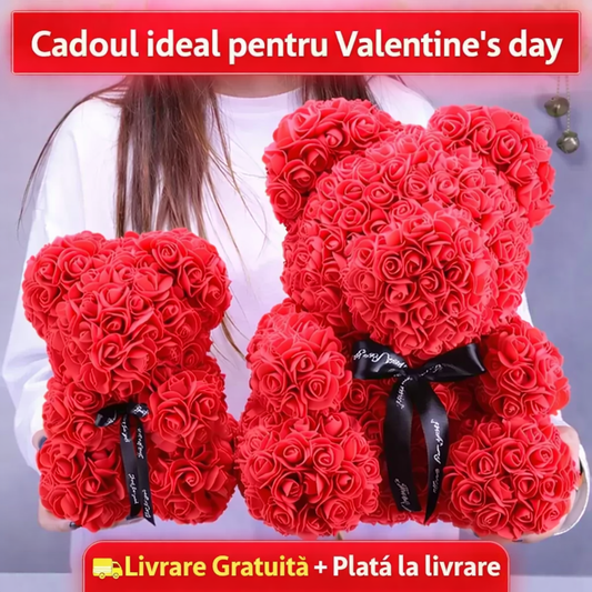 Cadou Premium "Iubire Eternă"-Ursuleț cu spumă trandafir + Cutie transparentă